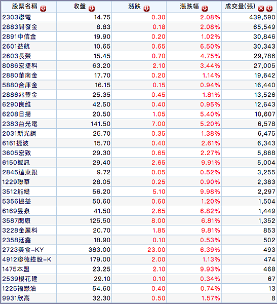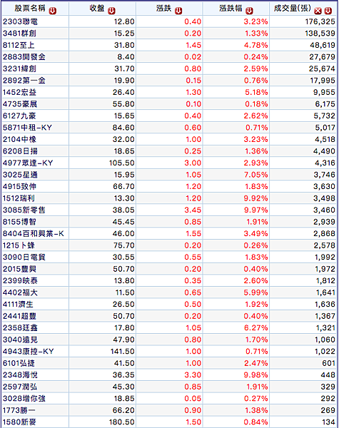 6/29 指數反彈,金融領漲、電子休息、聯電持續創高