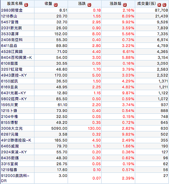 8/8 新光金投資組合調整開盤漲停、台股爆量1333億