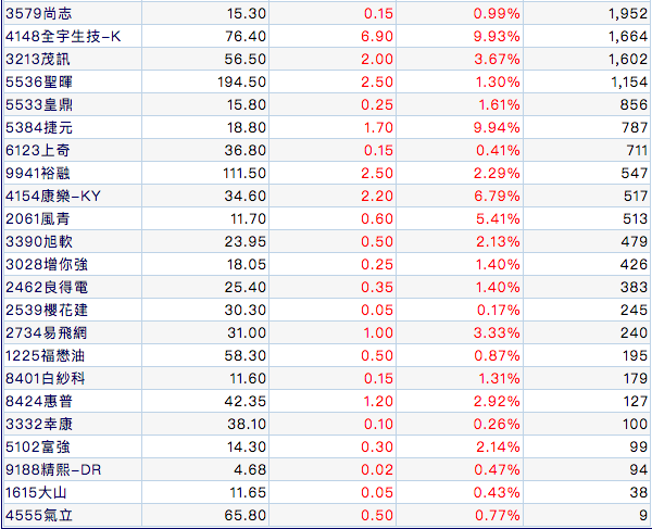 8/1 股市強弱表創4/7與4/10日以來新高,聯發科大漲近漲停