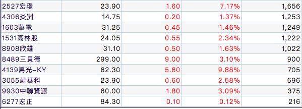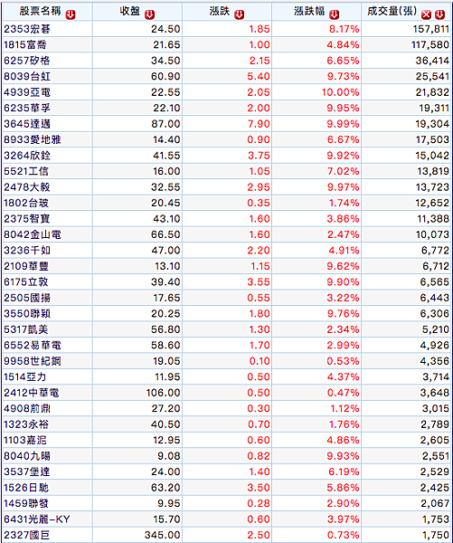 9/18 中興電盤中觸及漲停,爆量三萬張