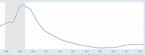 下面這張圖是美國信用卡違約率(Delinquency Rate on Credit Card Loans, All Commercial Banks)